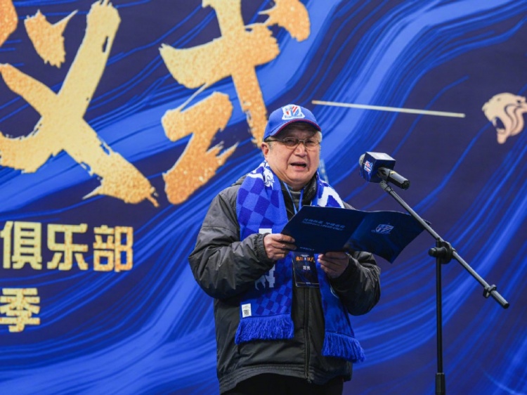 出征仪式上,俱乐部董事长谷际庆作动员讲话。他首先向长期以来一直信任支持申花俱乐部的各级领导、赞助商、合作伙伴、媒体、球迷朋友们致以衷心的感谢。谷际庆表示,社会赋予申花的托付与责任,申花之于足球的价值与承诺,都远超于一场比赛的胜利。新赛季就在眼前,今年我们将背负着前所未有的压力起步,只有每天脚踏实地努力工作,站稳脚跟,才有资格有机会去展望未来。久久为功,事在人为,新赛季我们无惧风雨,负重前行,申城之花依旧会绽放,我们的梦想一定会实现!